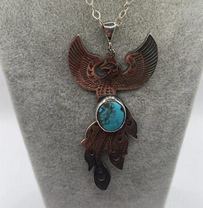 Firuze Taşlı Anka Kuşu Kolye
