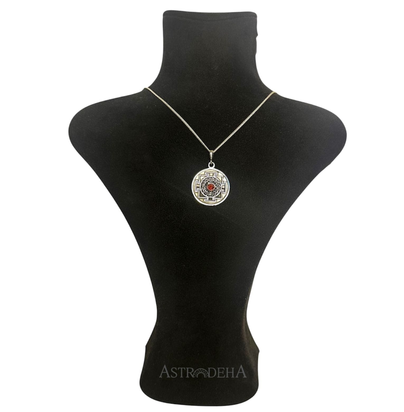 Granat Taşlı Sri Yantra Gümüş Kolye