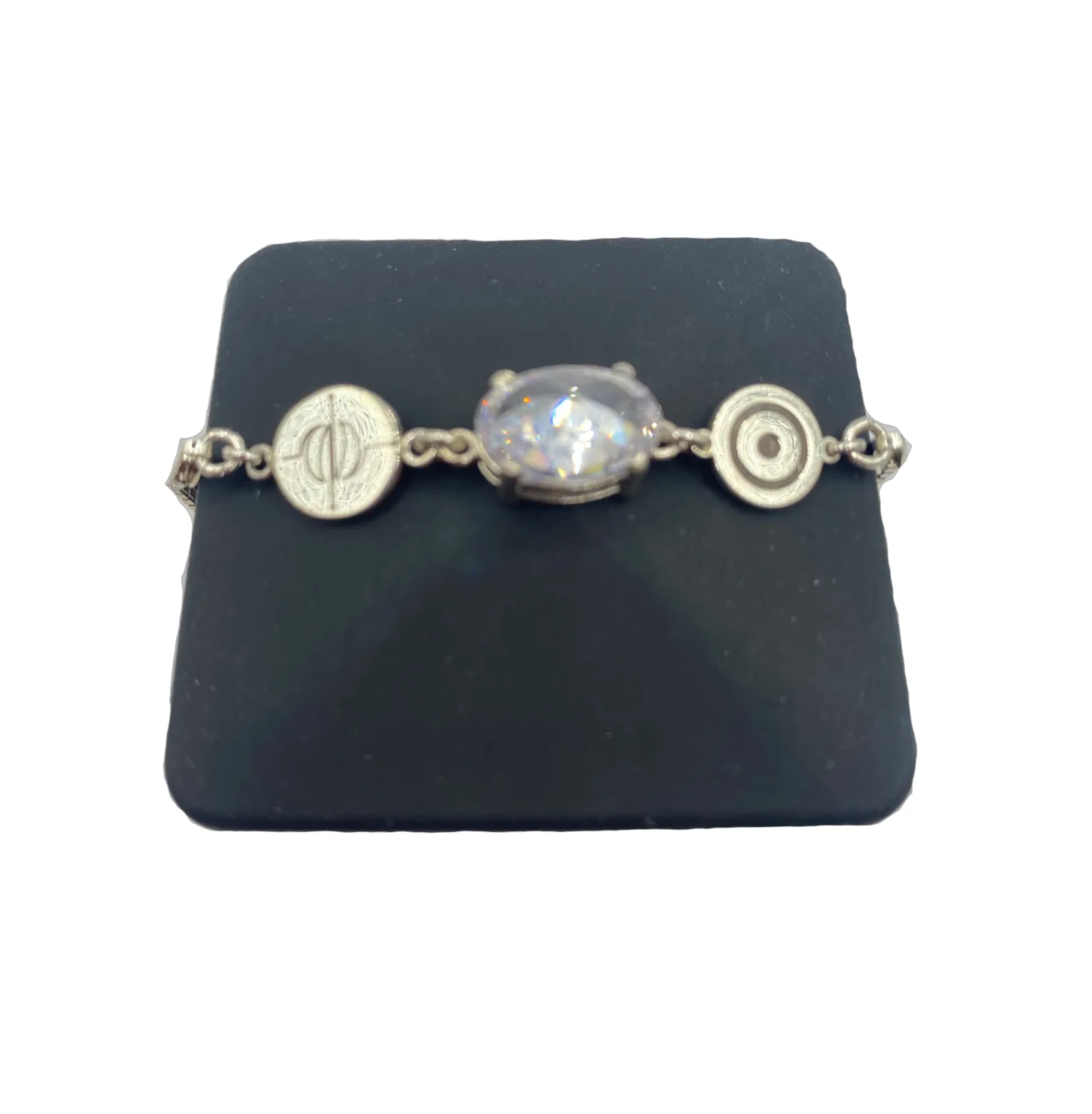 Şaman Koruma Sembollü Beyaz Topaz Gümüş Bileklik