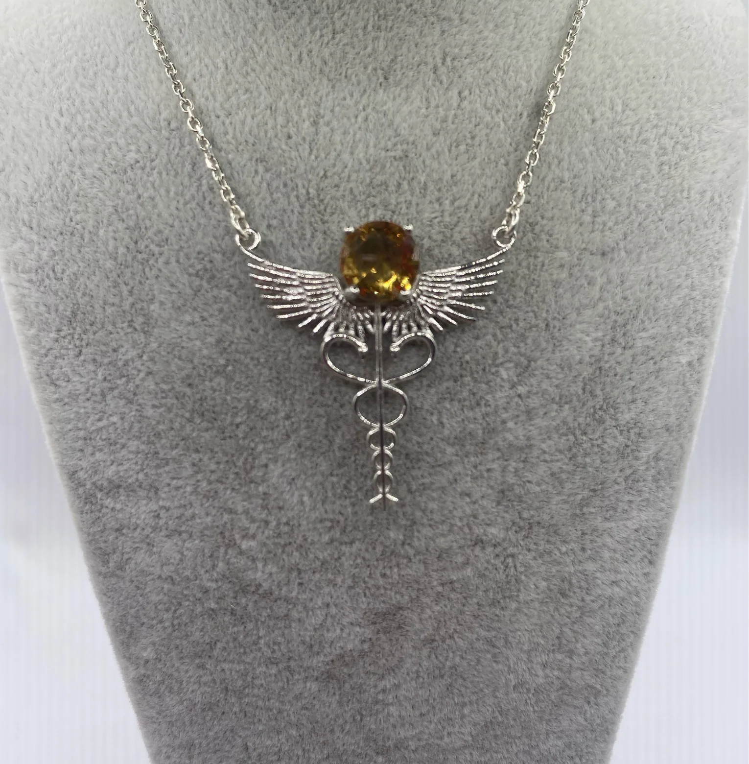 Granat Taşlı Hermesin Asası Gümüş Kolye